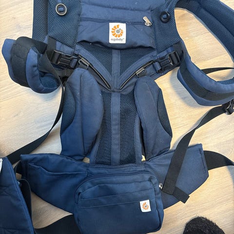 Ergobaby bæresele i brun farge. Designet for å bære barn trygt og komfortabelt. Justerbare stropper og polstret midjebelte for støtte. Egnet for bruk med barn i ulike aldre.