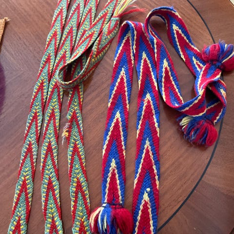 Håndlaget fletta hosebånd/sokkaband i ullgarn