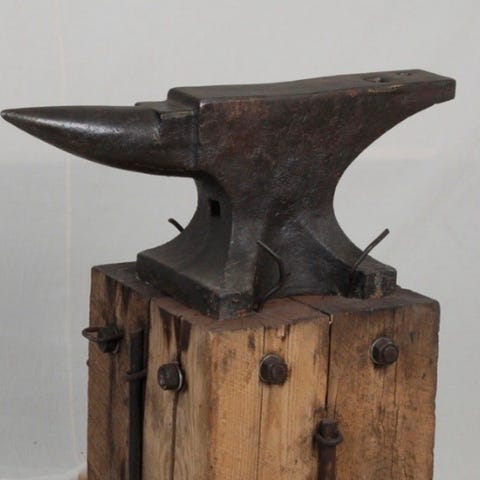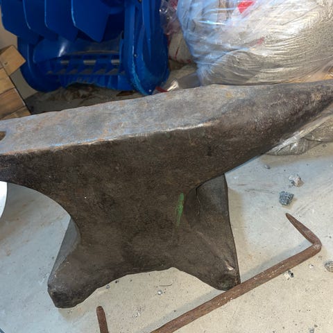 Ambolt med en lengde på cirka 62 cm og 27 høy, anslagsvis 40 kg.