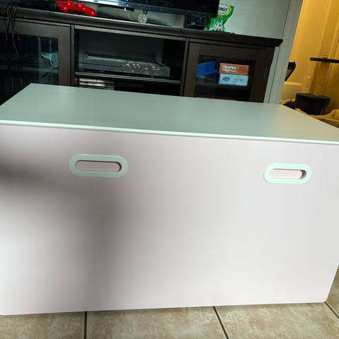 Pent brukt hylle, ingen store bruksmerker utenom få riper på baksiden som oppsto under flytting fra hus til leilighet. Hylle ble strammet for hard mot tilhenger siden. Som sakt det er få riper og kun på baksiden. Det følger med fire boxer