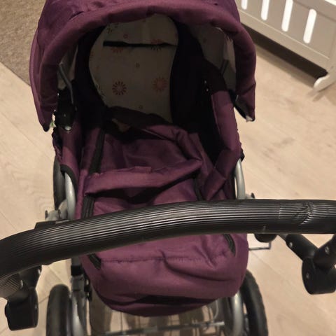 Fint brukt dukkevogn av merke Brio inkl bilstol som kan plasseres på vogna. Lite merke på vindtrekket som kommer av borrelås.