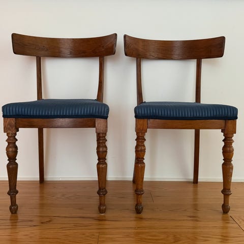 Vakkert treverk med tydelig og dekorativ åretegning (rosentre / palisander-look). Slanke, lett skrånende ben og tidløst design som passer godt både i moderne og klassiske interiører.