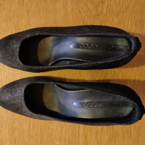 ECCO Hæler sko i størrelse 38. Skoene er laget av svart skinn og har en klassisk hældesign. Passer til formelle og uformelle anledninger.