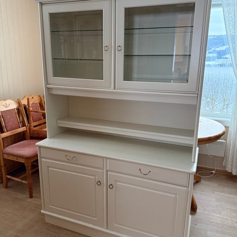 Pent brukt vitrineskap selges.