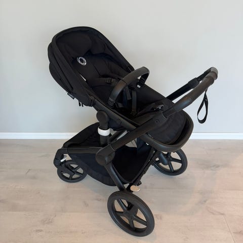 Jeg fikk denne barnevognen, men fikk en annen vogn i tillegg. Den er helt ny. Ligge/ sitte del + myggnett + regntrekk + koppholder + bilsete (usiker at det passer til den norske standarder). Vognen er veldig smidig og behagelig å styre. I sammenlagtbar posisjon er den cirka 87/34 cm. Enkelt å ta av delene og hjulene.