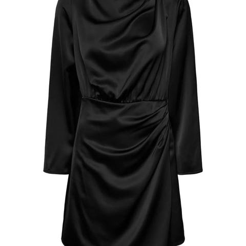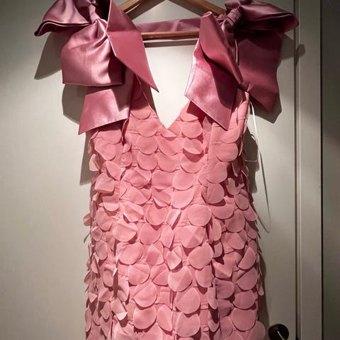 Selger denne lekre og unike minikjolen fra ASOS. Den er i en lekker svart fløyel og er dekket av glitrende tassels. Den har en lekker høy hals, og selve kjolen kommer i en avslappet passform. Den er i str. 40, men kan passe 36-38 også, da blir den bare noe mer oversized. Du kan bruke den med et belte eller bånd i midjen, som du ser på det ene bildet, så får du frem litt mer figur om du ønsker det. Den har en lekker liten åpning på ryggen som er prikken over i-en. Den er kun brukt to ganger, men som du ser på det ene bildet så har tråden til den ene hempen løsnet. Dette er ikke av betydning, da det holder mer enn nok å feste med to. Ny pris inkl. toll og moms kom på rett over 3000,-