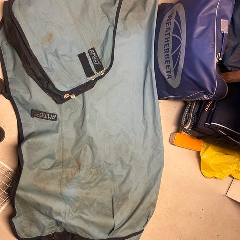 Amigo 0g regndekken str 155. Ikke fester til hals eller liner. Ingen skader, men noe solbleiket.