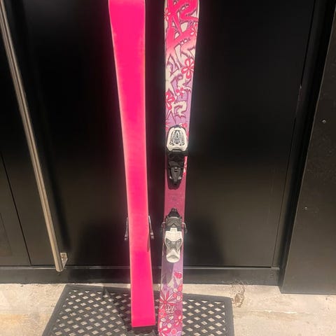 K2 Luv Bug barneski med lengde på 100 cm. Skiene har et fargerikt design i rosa, grønt og svart. Egnet for barn.