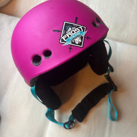Hjelm av merket «Frost», brukt til både skøyter og slalom, med justering ift størrelse, dekker ørene og behagelig å ha på selges for 200 kr. Pent brukt. Må hentes i Løten.