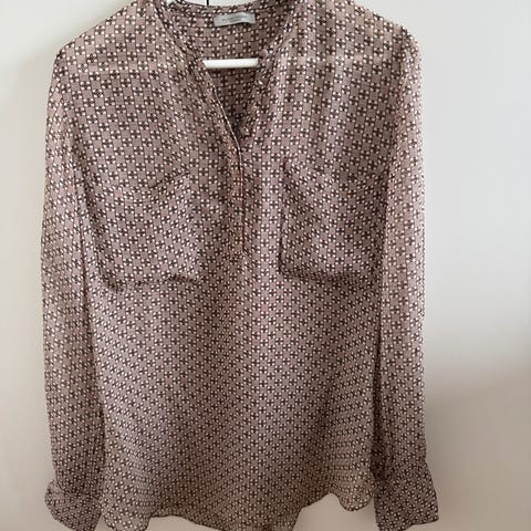 Hunkydory bluse i svart/mørkblå viskose med mønster. Blusen har knappelukking foran og er laget av 100% viskose. Den er designet for kvinner og har et lett og mykt materiale. Det medfølger et separat stykke som kan kneppes på foran