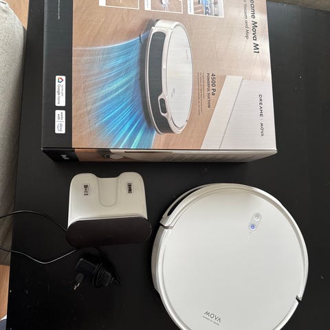 Kan styres med app og er godt brukt. Følger med ekstra mopper
