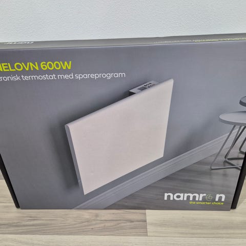 Namron PH35 elektrisk panelovn med effekt på 600 watt. Fargen er hvit, og den er utstyrt med en digital termostat for temperaturkontroll. Passer for oppvarming av mindre rom eller områder.