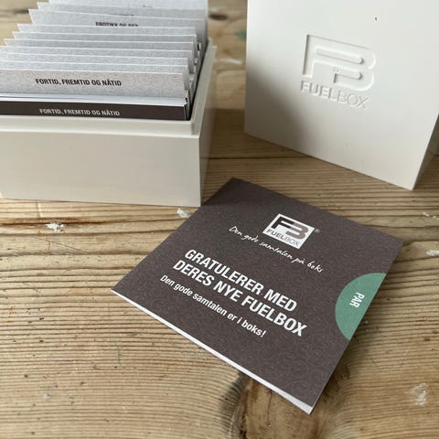 FuelBox Par inneholder 170 åpne spørsmål, fordelt på 10 kategorier, som vil gi dere mulighet til å snakke sammen om viktige, morsomme og alvorlige sider ved livet deres sammen og i livet generelt. Gode samtaler er avgjørende i et parforhold. De gjør at vi føler oss sett, hørt og verdsatt. Gjennom gode samtaler utforsker vi hverandre, reflekterer sammen, vokser sammen, og spesielt viktig; ler sammen!
