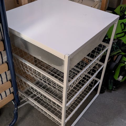 8 trådkurver med stativ selges. Pent brukt.