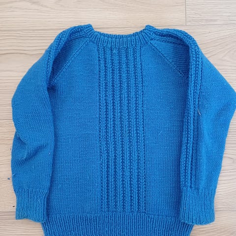 Hjemmestrikket genser i merinoull og håndfarget mohair