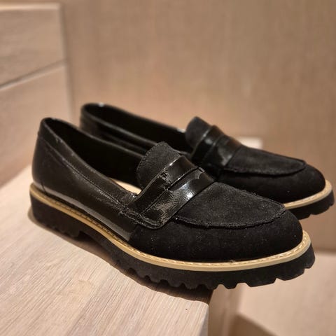 Camper Loafers, marineblå i semsket skinn, med rågummirand og hvit sole, str.39. Brukt et par ganger, fremstår som ny. Kjøpt for € 199,- (vel 2.000,- NOK). Selges for 1.000,-