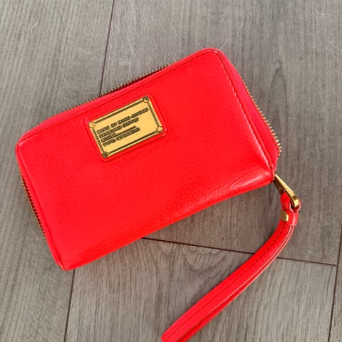 Marc Jacobs Dame lommebok laget i lær med rød farge. Lommeboken har glidelås og metallplate med logo på forsiden.