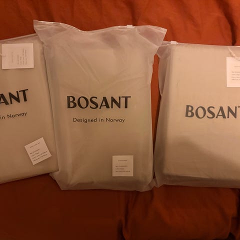 Selger en stor og god dunpute samt to silkemyke trekk i champagnefarge fra det norske merket Bosant.