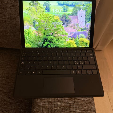 Strøken Surface Pro 11 i den sjeldne og nydelige fargen "Dune" selges med alt av tilbehør, komplett i esker!
