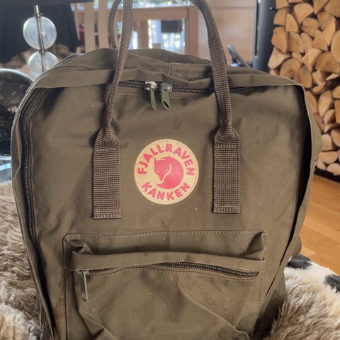 Fjällräven Kånken ryggsekk 17" med egen pclomme og stor sidelomme. Har ligget i bod og samlet støv så trenger en vask.