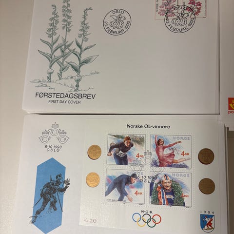 De fleste førstedagsbrev fra perioden 1986 til 1989. Noen av brevene er Jessheim frimerkeklubb sine stemplinger fra 80-tallet. Ett fra Stortinget i 1995.