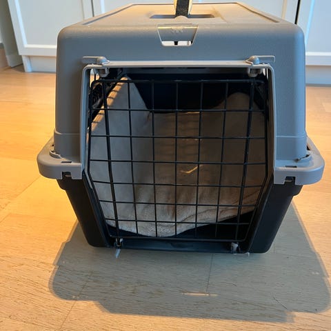 Hører med en pute og plastbunn, som gjør buret enkelt å rengjøre ved behov.