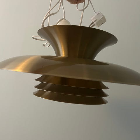 Selger flott lampe som likner de kjente design lampene av Serge Mouille. Vi har kjøpe denne brukt så kjenner ikke til faktisk merke.