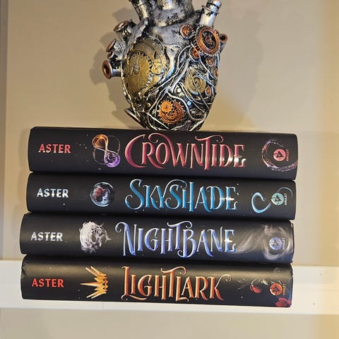 Grim and Oro boken fra Lightlark serien til Alex Aster. Populær booktok bok. Har noen skjønnhetsfeil på slipcase.