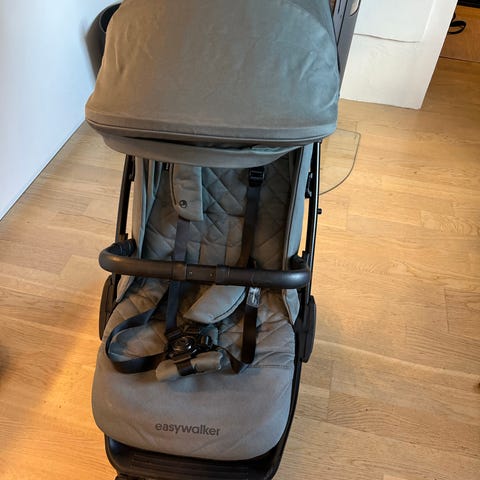 Pent brukt Moweo trille. Seteryggen kan justeres slik at barnet kan både sitte og ligge.