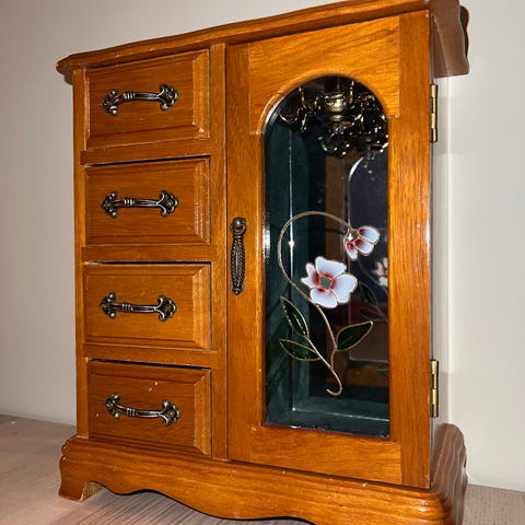 Flott gammel kiste. Låsekassen er ikke funksjonell Holdefunksjonen har falt av. Det ligger noen deler, men jeg har aldri prøvd å sette de sammen.