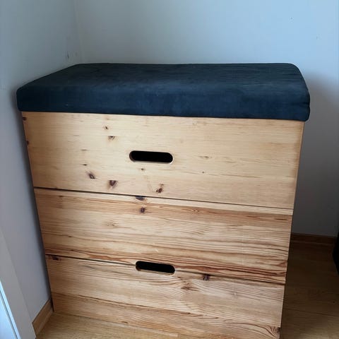Tre hyller med skuff nederst høyde 61 cm dybde 40cm og bredde 60 cm