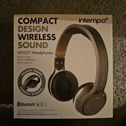 Noen små skader på esken da de har ligget oppbevart i skapet en stund, men selve esken er uåpnet og hodetelefonene er helt nye.