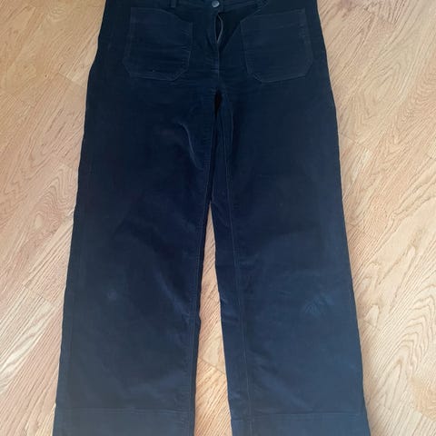 Klassisk og stilren bukse i myk velour/fløyel, passer både til hverdags og penere bruk. Normal passform med beltehemper og rene linjer.