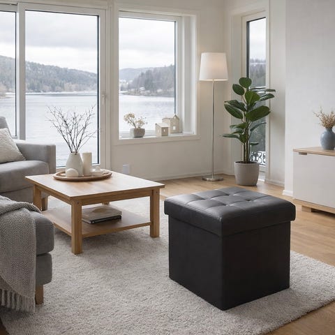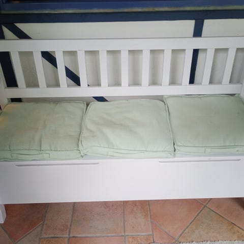 Fin oppbevarings og sitte plass for 2. perfekt som en ekstra plass rundt bordet eller ved enden av seng. God oppbevaringsplass inne i.