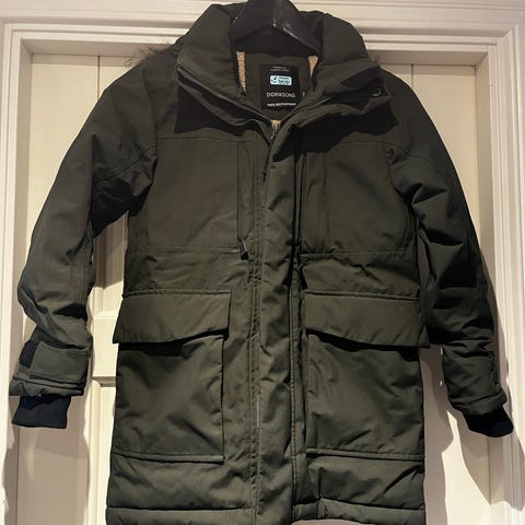 Didriksons Parkas laget i Gore-Tex materiale. Jakken er blå i fargen, størrelse 140, og passer for barn i unisex. Jakken har hette med avtagbar pelskant og er vannavstøtende.