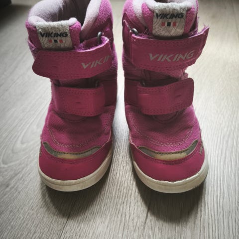 Viking rosa barnestøvler i størrelse 33. Støvlene har borrelåslukking. Svært gode, varme og stødige, egnet for utendørs vinterbruk og gir støtte og komfort til barnets føtter.