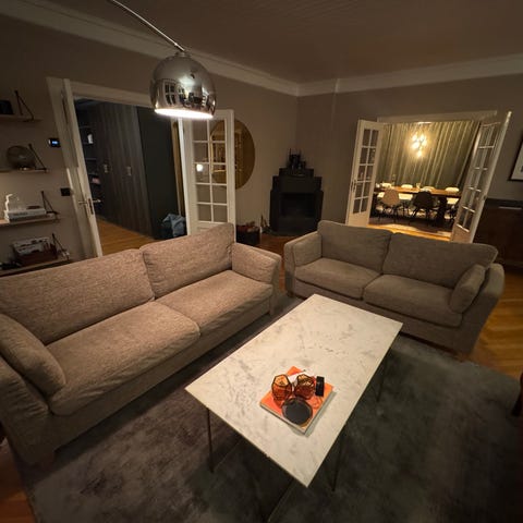 Pent brukt sofa fra møbelringen. Vendbar sjeselong som kan tilpassen stuen, god plass til 3 personer.