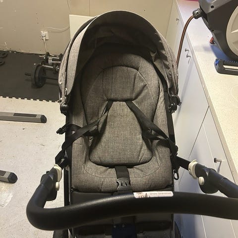 Stokke trailz, i fargen grå. Kan følge med både babybag ( nyfødt del) og stelleveske