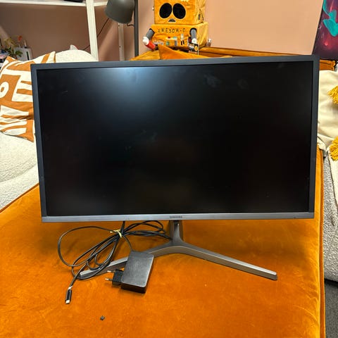 NEC 27 tommer skjerm med hvit ramme og rund hvit sokkel. Skjermen har en slank profil og passer til generell bruk. 1080p oppløsning.