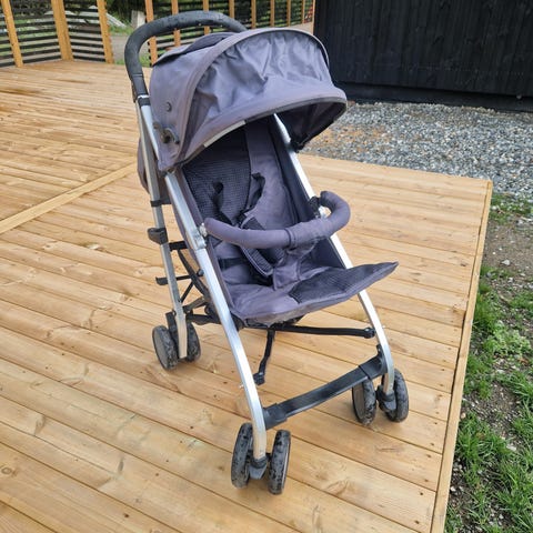 Veldig kjekk reisetrille som kan slås sammen til en størrelse man får med seg ombord i fly, trekk medfølger. Ryggen kan legges ned. Og det er plass til noe oppbevaring under.