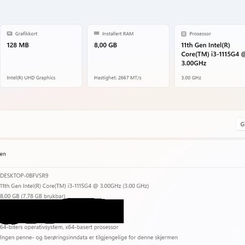 Acer laptop med 477 GB lagringsplass, 16 GB RAM, og Intel Core i5-1235U prosessor. Inkluderer Windows 11 operativsystem.