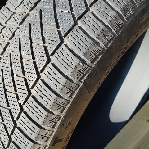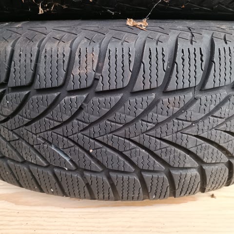 Fire gode vinterdekk mellom 6-7 mm mønsterdybde.