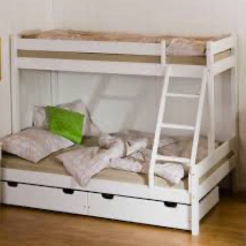 Praktisk køyeseng. Tror den er fra Ikea. Har noen bruksmerker, men kan fint males.