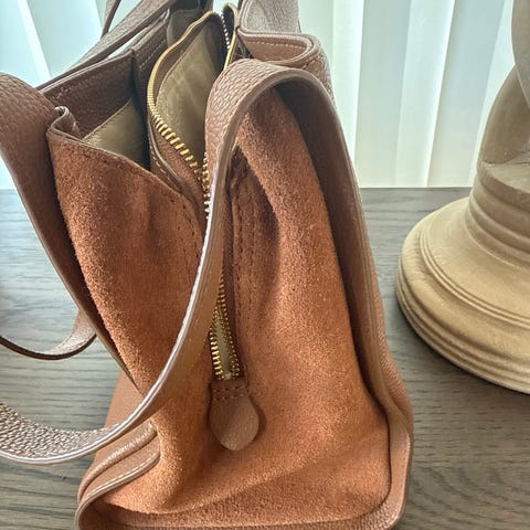 Fantastisk bag/veske fra Obag med ekte pelskant og innvendig veske - denne kan tas av etter ønske. Fargen kan beskrives som "gammelrosa", håndtak i semsket skinn.