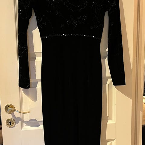 Pen sort kjole med strassdetaljer. Rekker over knær. Normal i str.