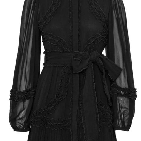 Modellen heter Blake Dress. Den har voluminøse korte ermer og et ballongformet skjørt som fremhever figuren på en elegant måte. Kjolen er pyntet med 3D-blomsterdetaljer og lukkes med glidelås i ryggen.