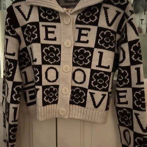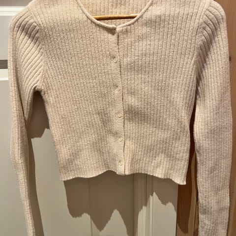 Bershka cardigan i størrelse M for kvinner. Laget av polyester og har en grå farge. Designet som en knappet cardigan, egnet for daglig bruk.