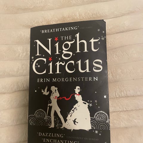 Selger the Night Circus av Erin Morgenstern for 50 kr. Den er lest én gang, ellers bare stått på hylla. Boka er 17,5 cm høy.