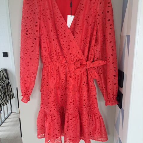 Nydelig rød kjole fra Neo Noir, aldri brukt. Størrelse M, men vil si denne passer fra S-L, da den har en strikk i livet som strammer inn i midjen ☺️ Behagelig og luftig stoff.