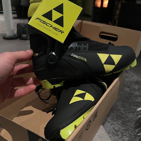 Fischer JR Team Combi skisko for barn i svart og gul farge. Skiskoene har en lukking med borrelås og glidelås, og er designet for både klassisk stil og skøyting innen langrenn. Egnet for barn, størrelse 36